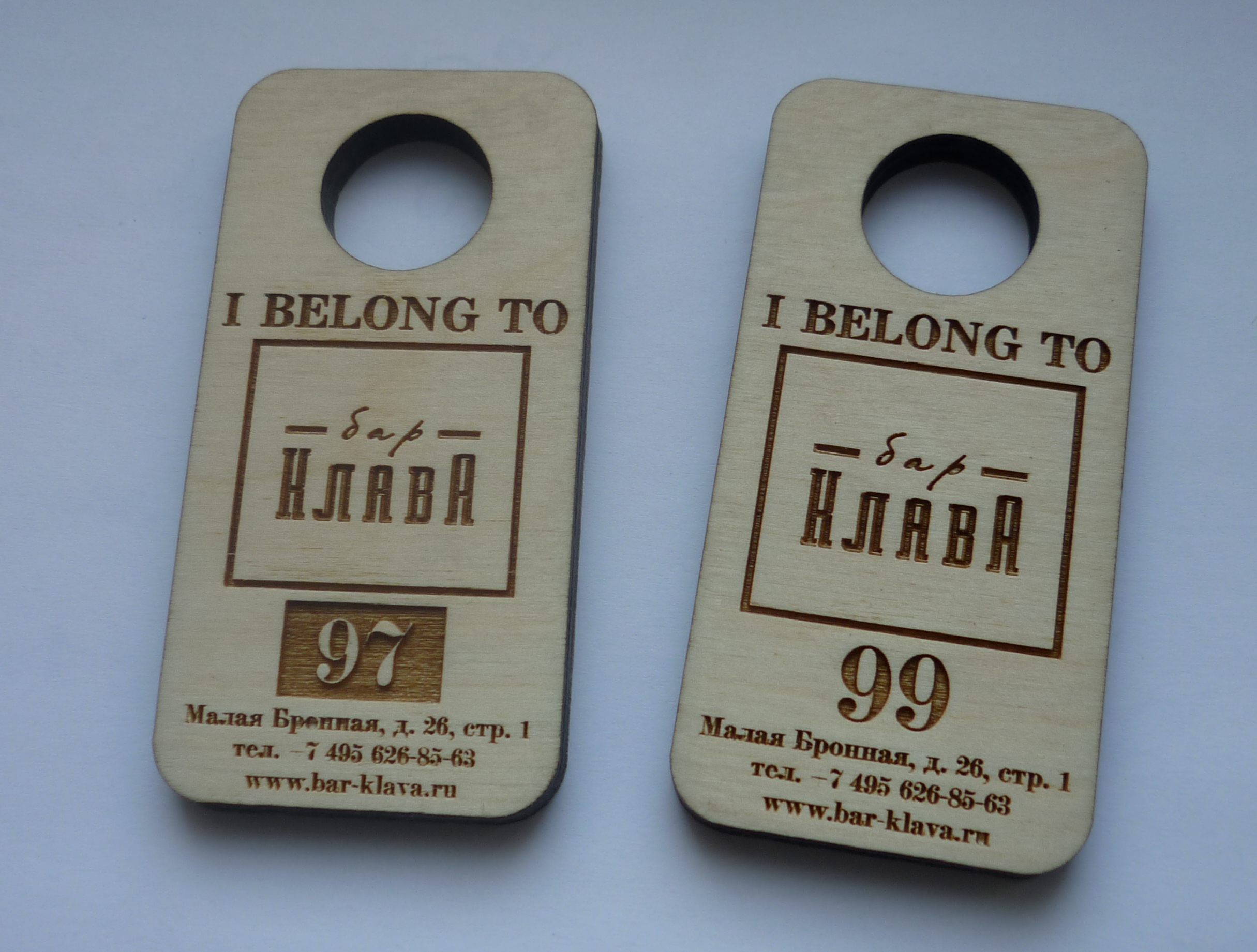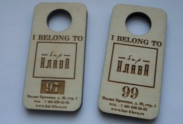 Наша компания изготавливает на заказ такие изделия из дерева ка гардеробные номерки, шильдики, бирки.