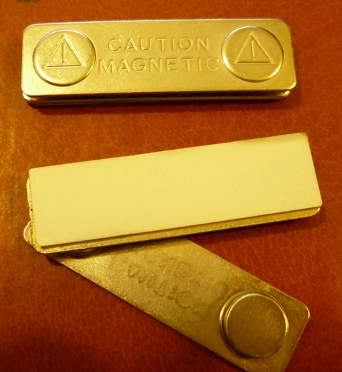 Магнит для бейджа 45*13 мм, металлический является креплением для бейджа, магнит состоит из двух частей: одна часть самоклеющаяся - крепится к бейджу, вторая часть магнитная, контактирует через одежду с первой частью, посредством магнитного поля.