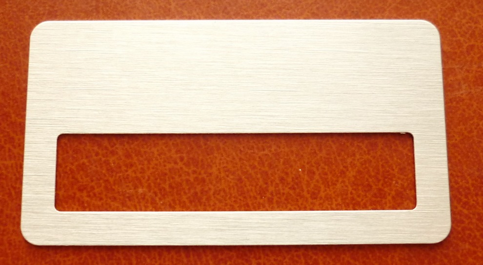 Заготовка для бейджа 65*35 мм, окно 55*10 мм, цвет серебро, изготовлена из сублимационного алюминия толщиной 0,5 мм и предназначена для нанесения сублимационной печати.