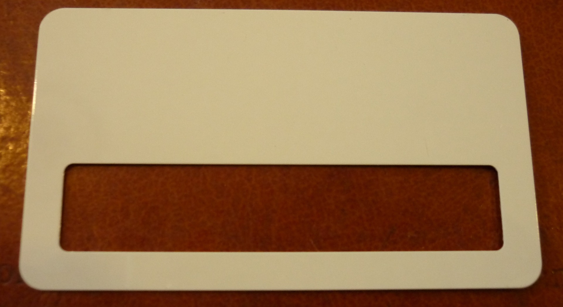 Заготовка для бейджа 70*40 мм, окно 60*12 мм, цвет белый, изготовлена из сублимационного алюминия толщиной 0,5 мм и предназначена для нанесения сублимационной печати.