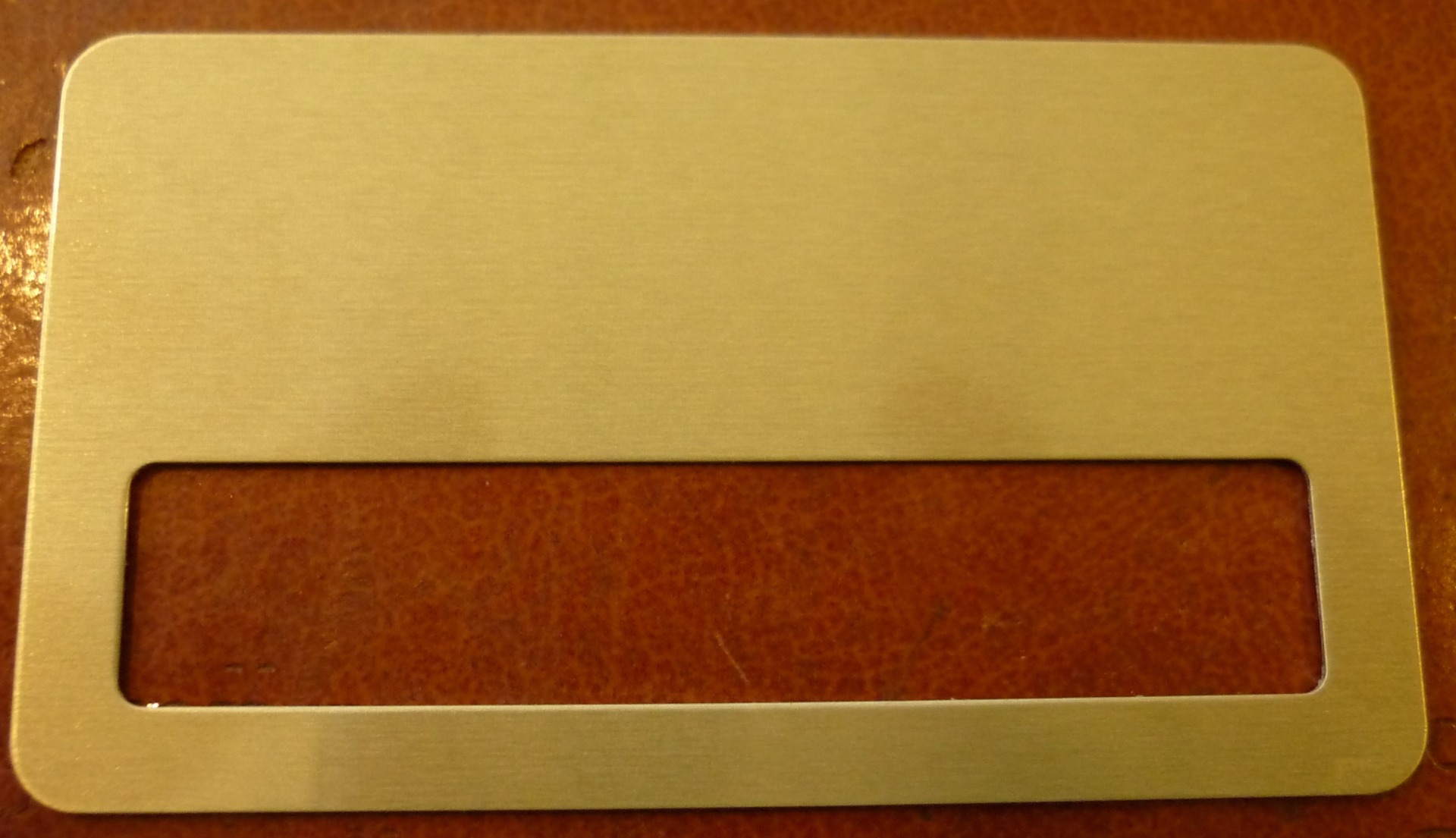 Заготовка для бейджа 70*40 мм, окно 60*12 мм, цвет золото, изготовлена из сублимационного алюминия толщиной 0,5 мм и предназначена для нанесения сублимационной печати.